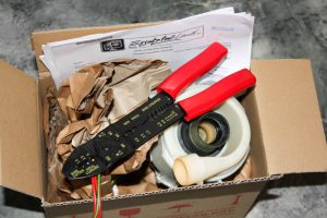 So eine Zange braucht man für das neue Kabel, Quetschverbinder.