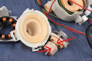 Fehler behoben. Mittlerweile kam der Fehler auch mitten während des Betriebes, nicht nur wie gewohnt am Anfang, höchste Eisenbahn etwas zu machen. Was ich vorher schon vermutet hatte, das die Heizpumpe zu schwergängig ist, ist eingetroffen. Ein ausgeschlagenes Lager bremst den Motor so stark das der Stromverbrauch zu hoch ist und der Fehler E24 angezeigt wird. Ich hatte mich bisher immer gescheut den Motor selbst zu wechseln, einerseits wegen dem Preis, andererseits sah es nicht so aus als wenn er sich einfach wechseln ließe. Der Preis beträgt ca. 80 Euro wenn man ein bisschen im Internet recherchiert, ich habe diesen bei einem Anbieter auf einer Auktionsplatform gefunden, bei welcher können sie sich denken. Die gibt’s auch bei einem anderen großen Anbieter im Internet, fängt mit A an…
