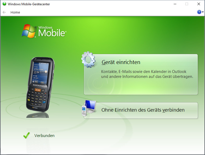 Das Windows Mobile-Gerätecenter ist die einzige Möglichkeit MDE’s mit dem PC zu verbinden. Neuere Geräte, oder Geräte mit aktueller Firmware oder auch nach einem Windows-Update funktioniert es auf einmal nicht mehr. Jetzt hat man auch keine Muße Windows Vista zu benutzen. Der Kunde hat es schließlich auch nicht. Dafür ist aber das Windows Mobile-Gerätecenter ursprünglich gedacht und zwar mit dem Active-Sync. Das gibt’s aber unter Windows 10 nicht mehr.