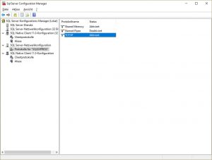 Aufruf von „Sql Server Configuration Manager„, der befindet sich nicht im Menü, also Ausführen von SQLServerManager13.msc mit Admin-Rechten.